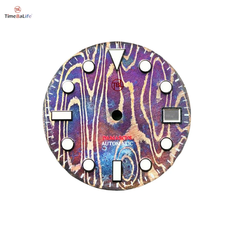 Color Damascus Steel Watch Dial with Unique Pattern Luxury Custom Dial for Automatic Men Watches